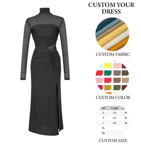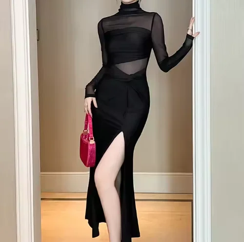 Elegant Vintage Midi Dress Long Sleeves Slim Fit Natural Slim Eco-Friendly Lace Solid Color Spring Sweet Style Zipper Decoration